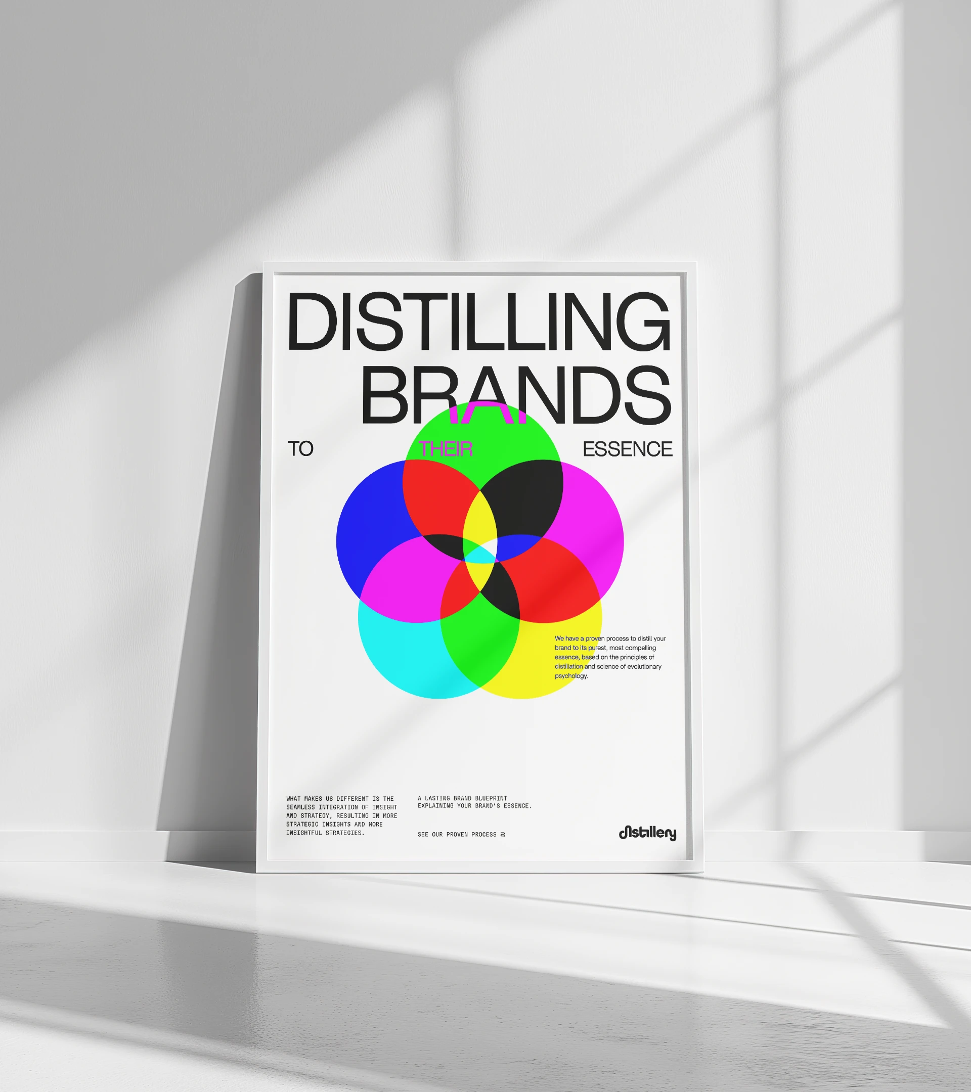 Distillery is a US/UK-based strategic research company with a long, prestigious client roster--Delta, Campbell's Soup, and Porsche to name a few! They've helped dozens of brands establish and re-establish themselves as category leaders, but didn't have a distinctive brand of their own. So the challenge quickly became: How to develop a strategy for a strategy company? We answered that with disciplined design and a straight-talking brand voice.